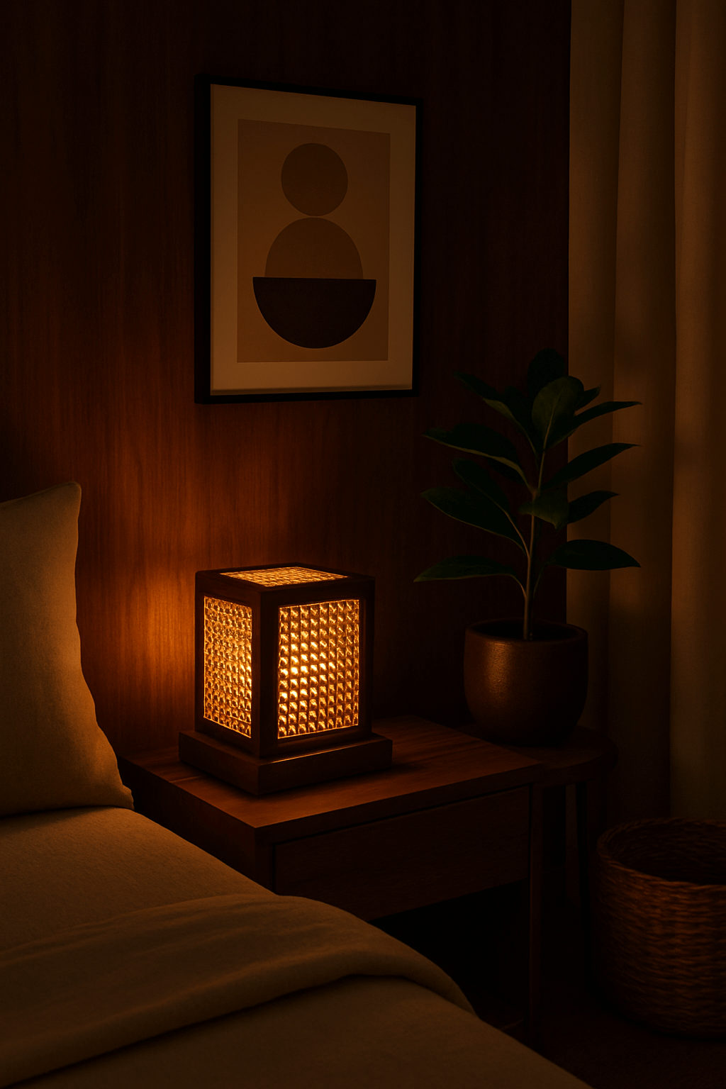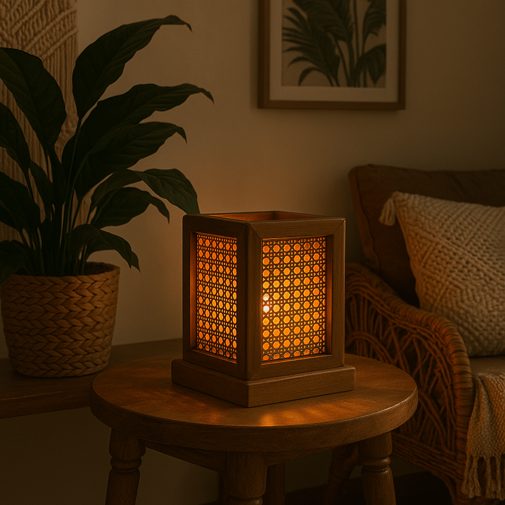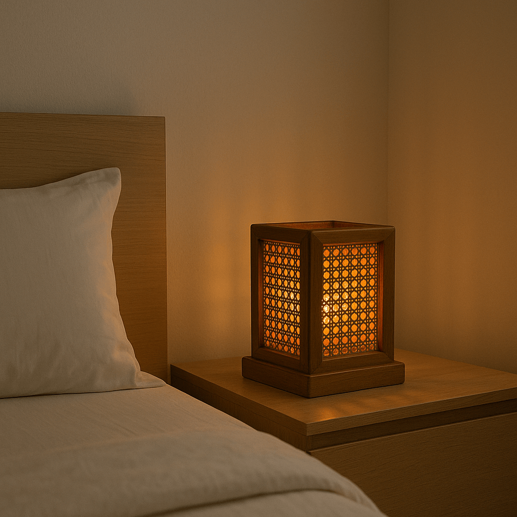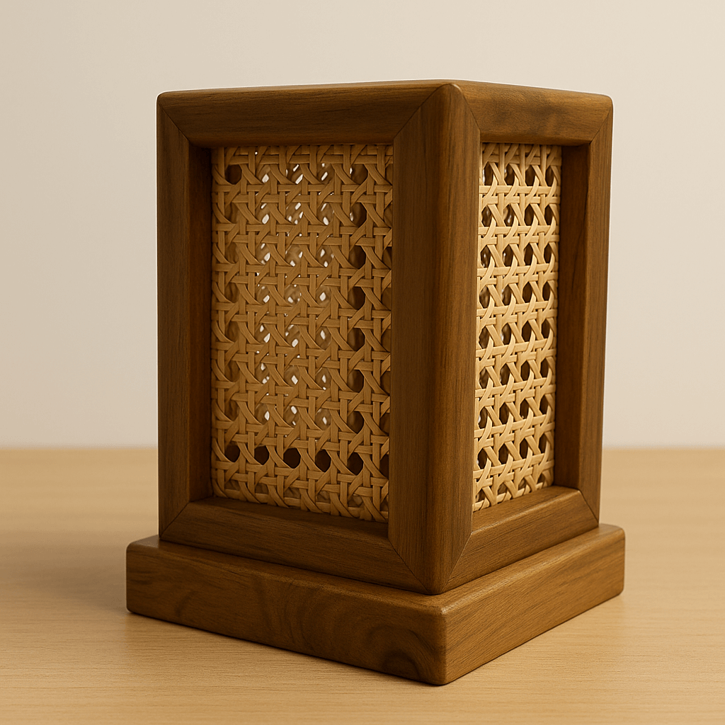 Teak Wood & Cane Glow Box Lamp – Warm Ambient Lighting with Handmade Craftsmanship